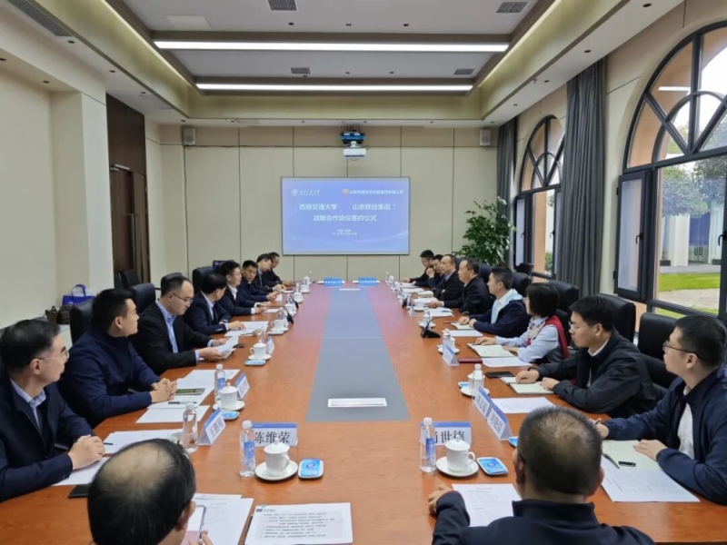 閆學東對王衛中一行的到來表示熱烈歡迎,對山東鐵投集團長期以來在軌道交通領域的深耕與貢獻給予高度評價。他指出,西南交通大學作為我國軌道交通領域的“黃埔軍?!保瑸閲抑卮蠼煌üこ膛嘤舜笈鷮I人才、突破了多項核心技術。山東鐵投集團在高鐵建設運營、產業生態構建、新質生產力發展等方面探索出多條特色路徑,為交通強國建設提供了堅實支撐。期待以此次簽約為契機,將學校的科研攻關能力、人才培養優勢與企業的工程實踐資源、市場應用場景深度融合,推動更多“實驗室成果”轉化為“實際成效”,為交通強國建設貢獻力量。