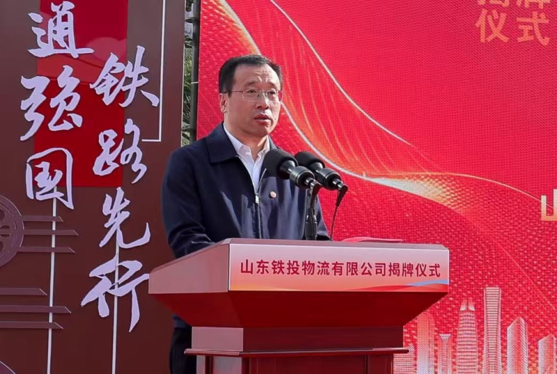 中國鐵路濟南局集團有限公司總調度長張躋棟在致辭中表示,山東鐵投物流有限公司的成立是山東鐵路發展進程中的一件大事,也是推動全省物流體系優化升級的重要舉措。濟南局將全力支持山東鐵投物流有限公司在運輸組織、運力保障、信息互通、業務協同等方面的發展,共同打造路省合作、互利共贏的典范,攜手拓展班列開行、倉儲配送、供應鏈服務等領域,為服務山東乃至全國經濟社會發展大局貢獻力量。